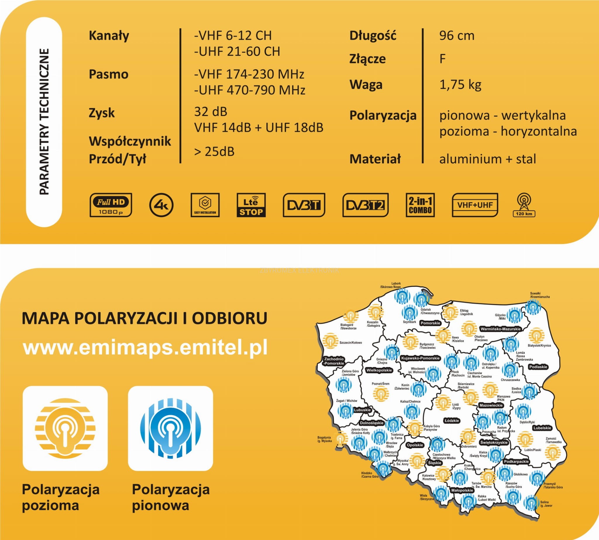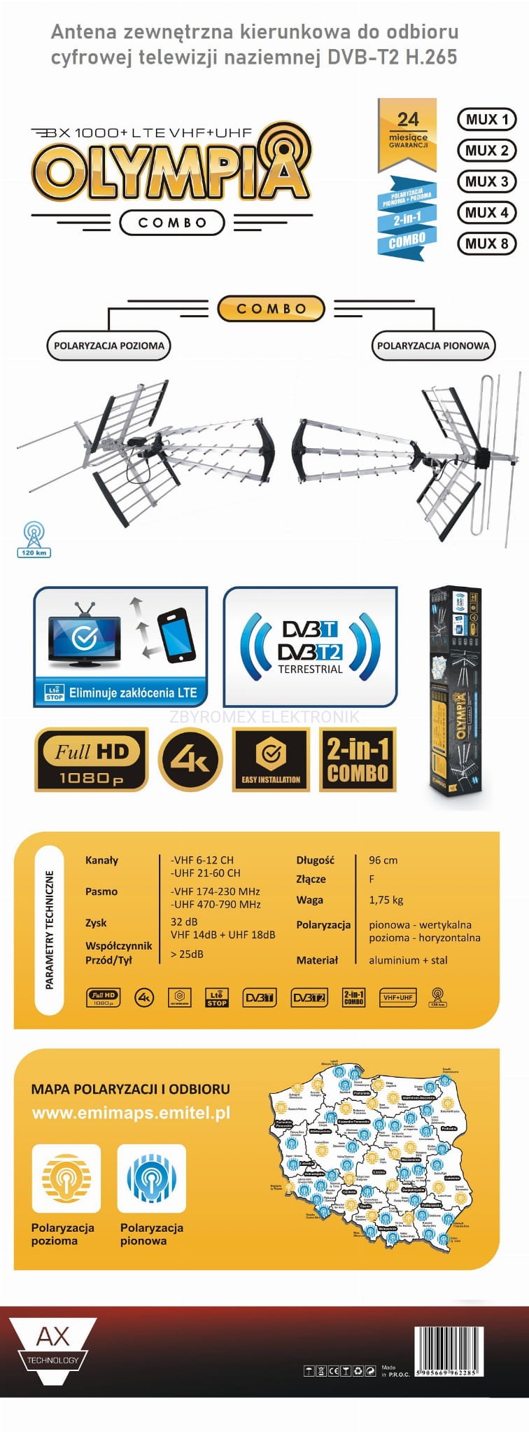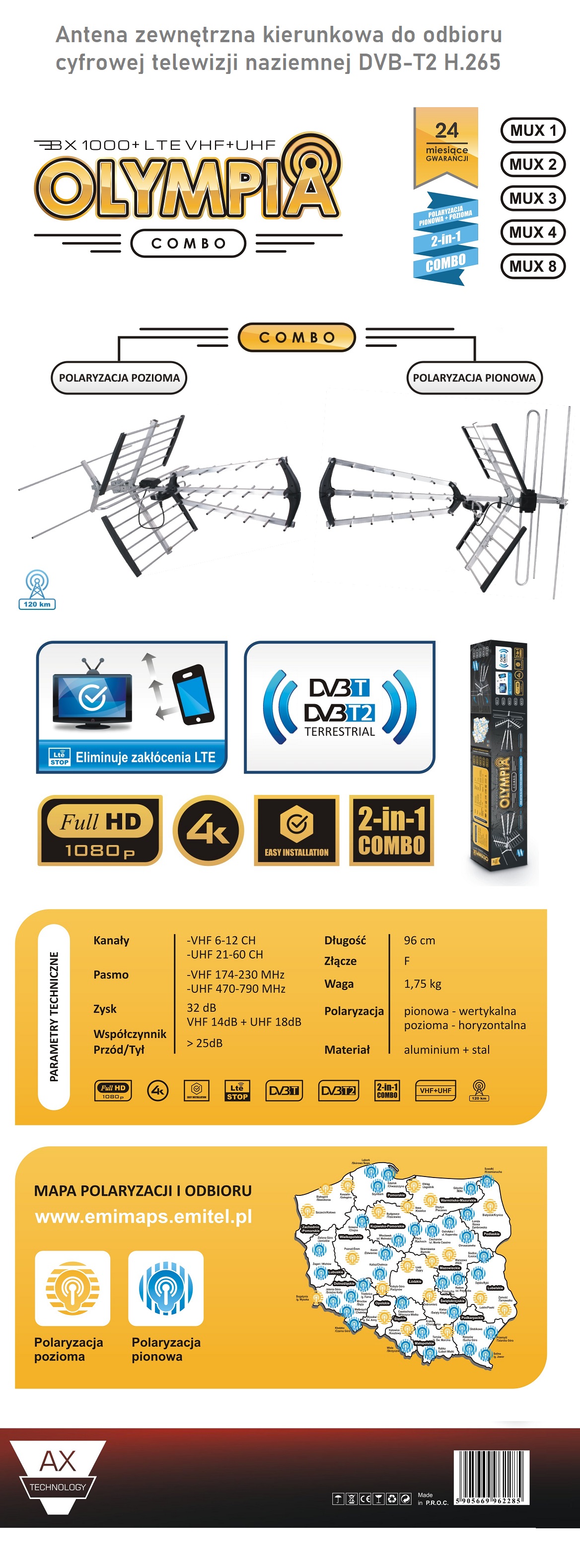 ANTENA DVB-T OLYMPIA BX1000+ LTE COMBO VHF(H/V) + UHF