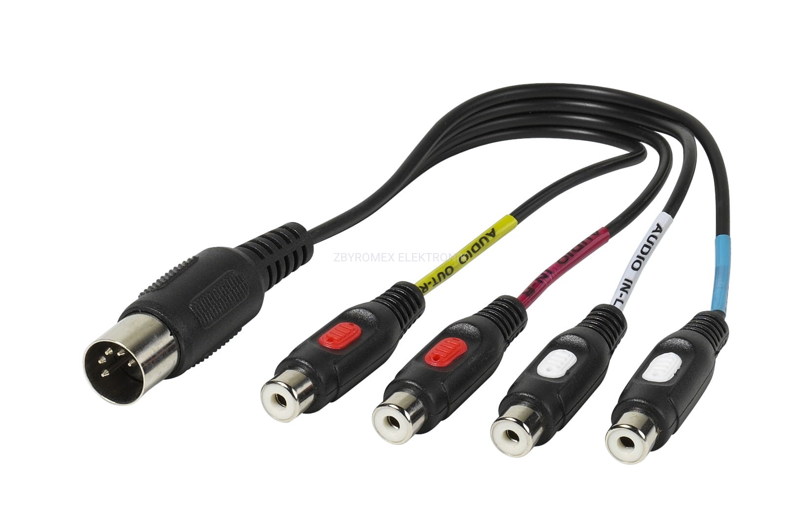 do podłączenia magnetofonu z wtykami RCA do wzmacniacza wyposażonego w gniazdo DIN 5-pin
