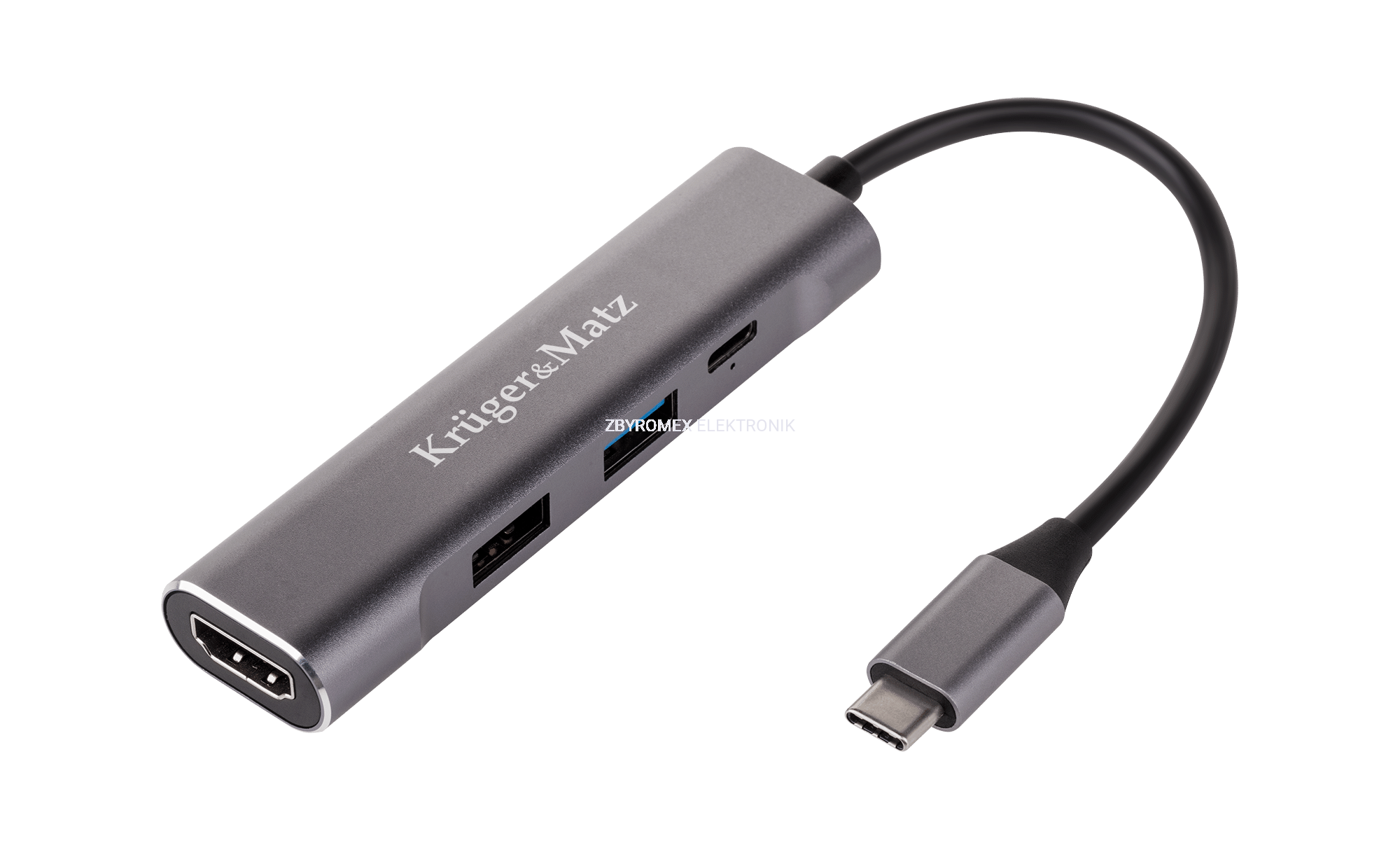 Adapter posiada dwa porty USB – 2.0 i 3.0 – za pomocą których możesz podłączyć klawiaturę czy myszkę. Dodatkowo, port USB 3.0 zapewnia szybkie przesyłanie danych, nawet 5 Gb/s. Trzecim niezwykle przydatnym portem jest obsługujące rozdzielczość 4K wyjście HDMI. Podłącz komputer do dodatkowego monitora lub telewizora i ciesz się obrazami w najwyższej jakości. Dużą zaletą adaptera Kruger&Matz jest port USB typu C, w którym wykorzystano technologię Power Delivery. Pozwala ona nie tylko na szybkie ładowanie telefonów, ale też zasilanie notebooków i monitorów.