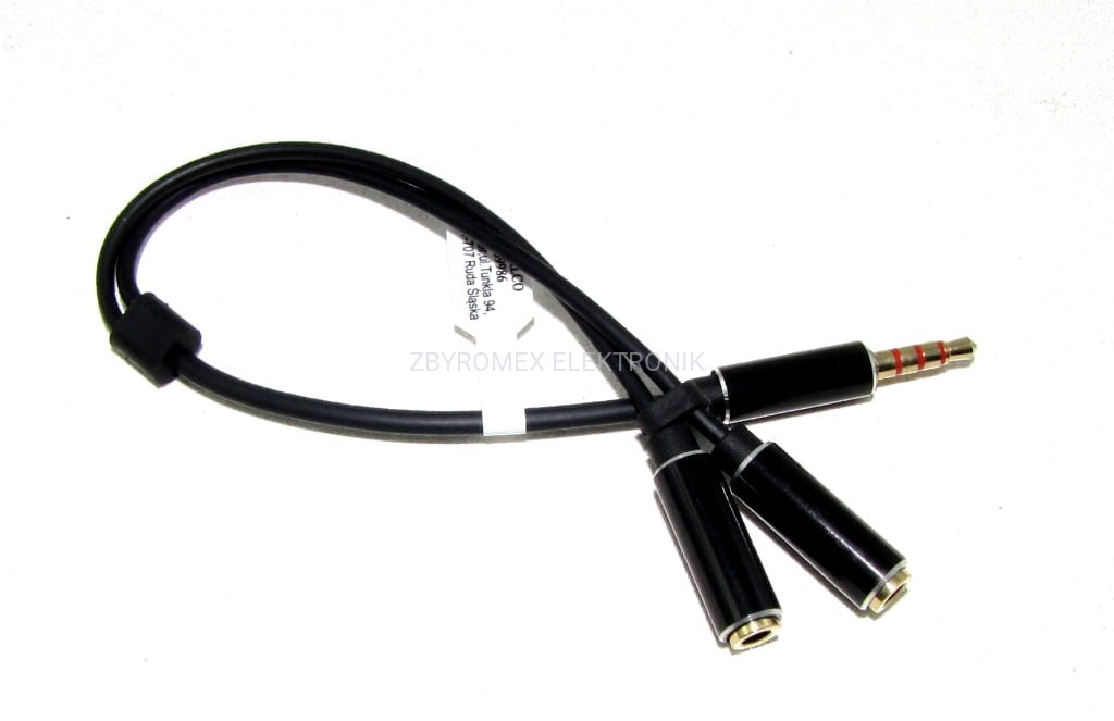Adapter wtyk 3,5 4-pol-(gniazdo 3,5 stereo+gniazdo 3,5 mono) slim przewód JR643 Vitalco