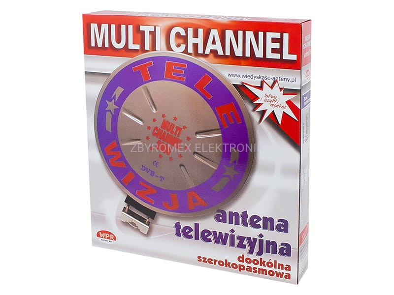 MULTI CHANNEL jest uniwersalną anteną do odbioru wszystkich programów TV i radiowych UKF w zakresie od 40 do 850 MHz. Zasilanie anteny odbywa się przez przewód koncentryczny doprowadzający wzmocniony sygnał do odbiornika. Przy zastosowaniu małostratnych biernych rozgałęźników sygnału można jednocześnie przyłączyć kilka odbiorników. Do przyłączeń stosować kabel koncentryczny o oporności falowej 75 omów i średnicy zewnętrznej 6 mm. Antena z rodziny Multi Channel (TELE-WIZJA) jest wykonana z bardzo wysokiej jakości polistyrenu (płyta hips biała 1,3 mm), co umożliwia jej montaż w praktycznie każdych warunkach atmosferycznych. Podstawową zaletą oferowanego produktu są jego niewielkie gabaryty oraz znikoma waga, przez co montaż anteny możliwy jest na wszelkiego rodzaju dachach, balkonach, oknach, a zarazem elementach ruchomych w postaci: samochodu, przyczepy campingowej, jachtu, itp. Zaletą tych anten jest ich dookólna (horyzontalna) charakterystyka kierunkowa, co w praktyce oznacza, że nie trzeba jej specjalnie kierunkować w stronę nadajnika. Antena posiada diodę sydnalizującą stan działania.