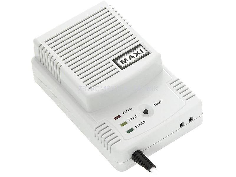 Detektor MAXI/K-GP przeznaczony jest do monitorowania zamkniętych pomieszczeń pod kątem obecności gazów palnych: metanu i propanu-butanu. Detektor dokonuje ciągłego pomiaru stężenia gazu w otaczającym powietrzu. Z chwilą przekroczenia wartości gazu wynoszącej około 15% Dolnej Granicy Wybuchowości (czyli przy stężeniu gazu około 7-krotnie niższym niż to, przy którym gaz może wybuchnąć) zostaje włączona optyczna i akustyczna sygnalizacja alarmowa. Dodatkowe wyjścia umożliwiają podłączenie do systemów alarmowych i sterowanie elektrozaworami oraz modułami akustyczno-świetlnymi (syrena, lampa). Wyłączenie alarmu następuje automatycznie z chwilą obniżenia się stężenia gazu poniżej progu alarmowego.