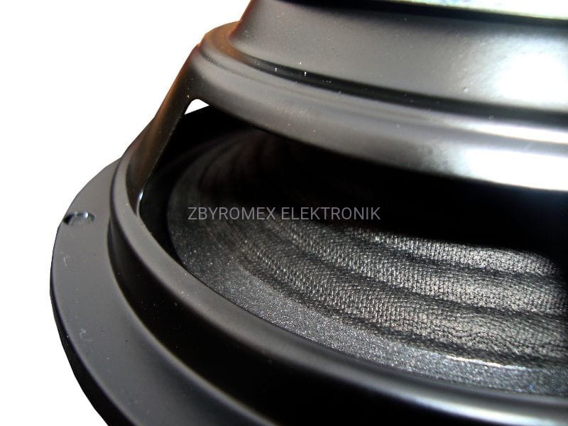 Głośnik estradowy z papierową membraną na miękkim zawieszeniu.