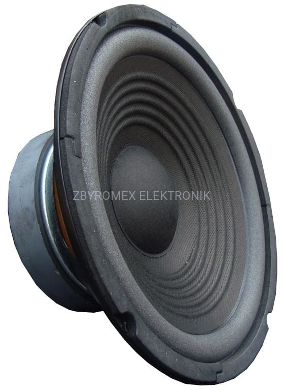 Głośnik niskotonowy z papierową membraną na miękkim zawieszeniu. Wentylowana cewka w znaczący sposób poprawia efektywność głośnika.