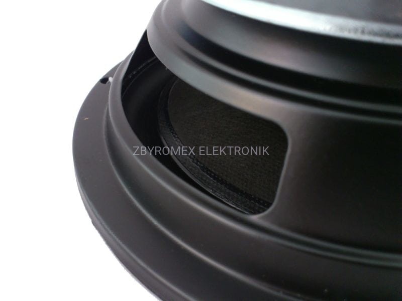 Woofer o zwiększonej mocy. Przetestowana seria głośników na gumowym zawieszeniu. Czarna membrana oraz kapsel nadają temu głośnikowi uniwersalności. Wentylowana cewka w znaczącym stopniu zwiększa efektywność głośnika.