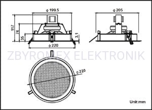 Moc: 2,5 / 5 / 10 W Napięcie: 100 V Częstotliwość: 100-20000 Hz Czułość: 98 dB Wymiary: śr. 220 / 117 mm Otwór montażowy: 199,5 mm