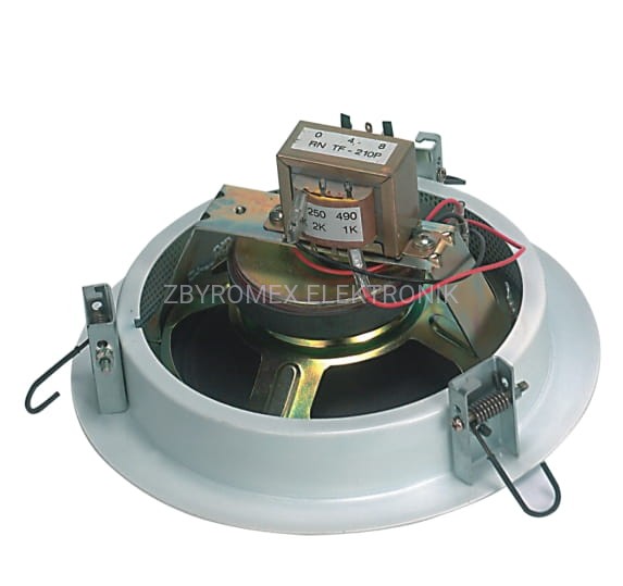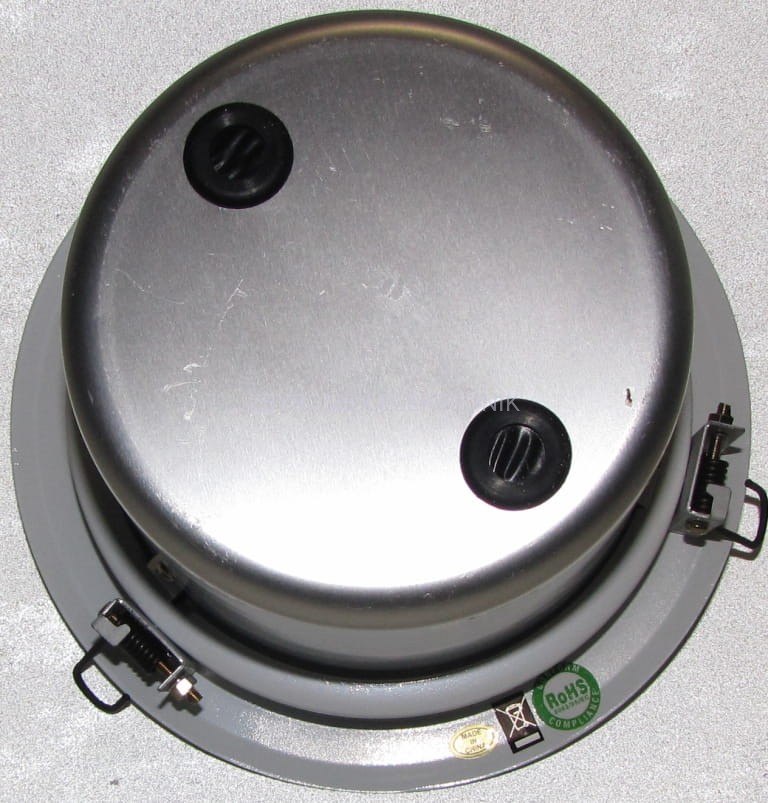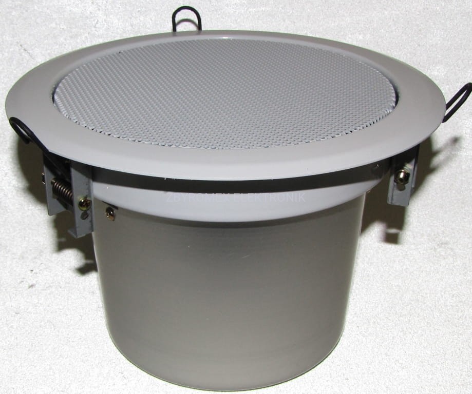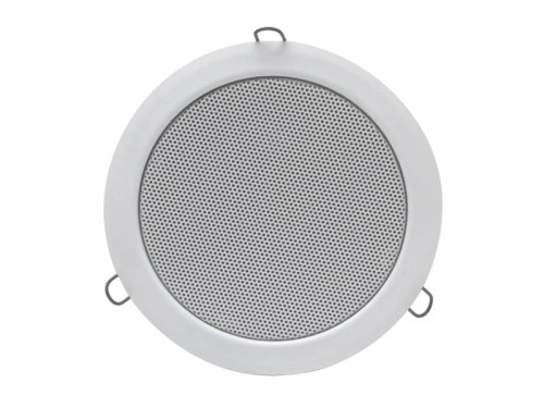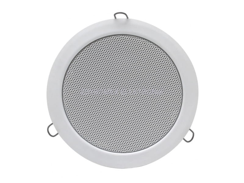 Głośniki sufitowe do przestrzeni takich jak biura, banki, szpitale, szkoły, restauracje, sklepy, itp. Kołnierz z blachy o grubości 2 mm, kolor biały, pokryty farbą ognioodporną. Montaż głośnika jest prosty i skuteczny. Mocowanie głośnika za pomocą specjalnych sprężyn.