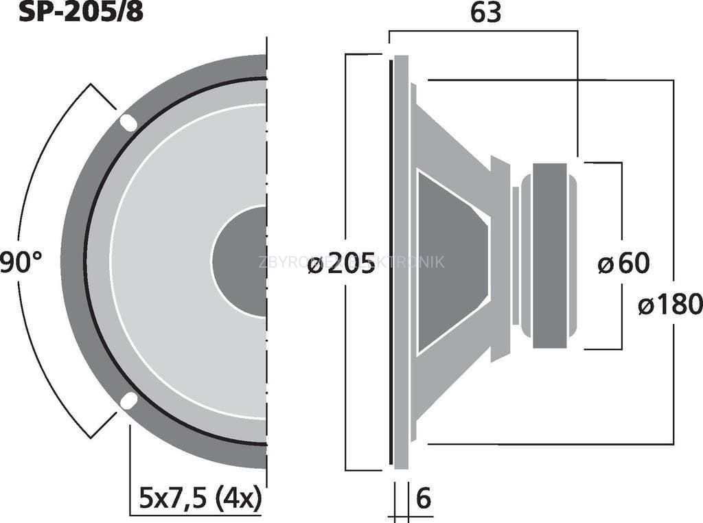 Uniwersalny głośnik szerokopasmowy, 8WRMS, 8Ω
