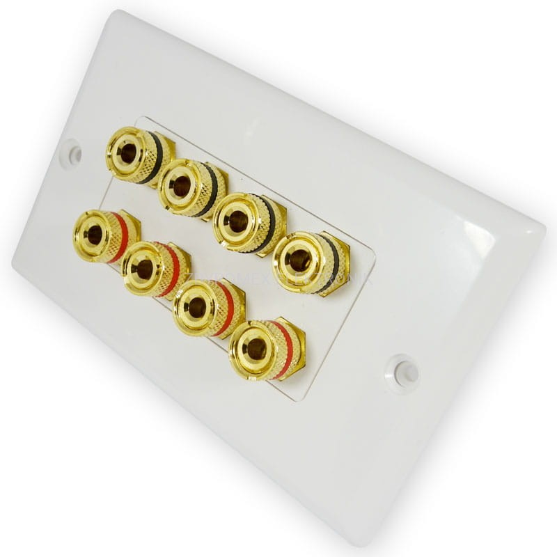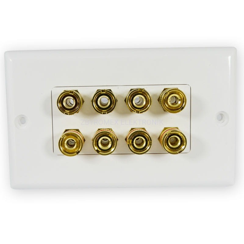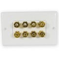 Gniazdo naścienne białe 8 x gniazdo głośnikowe banan Gold