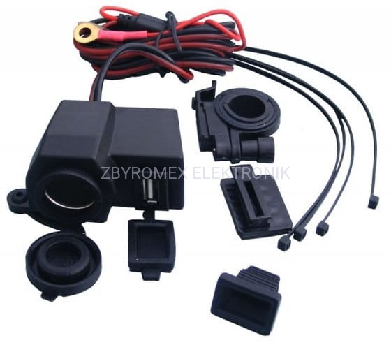 Gniazdo zapalniczki 12V + USB 2.1A do motocykla/skutera