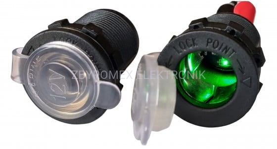 Gniazdo zapalniczki montażowe hermetyczne podświetlane zielona LED