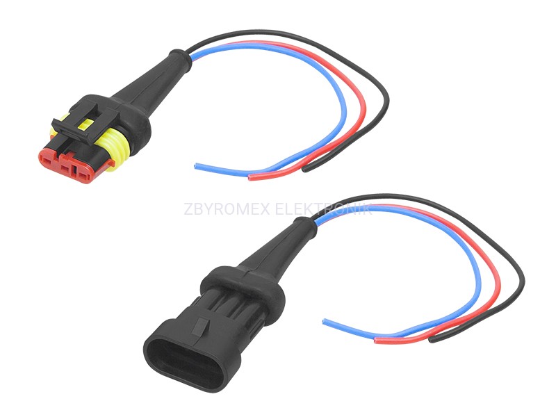 Hermetyczna kostka z kabelkiem OH-3 stosowana m.in. do różnych czujników samochodowych oraz do innych urządzeń.