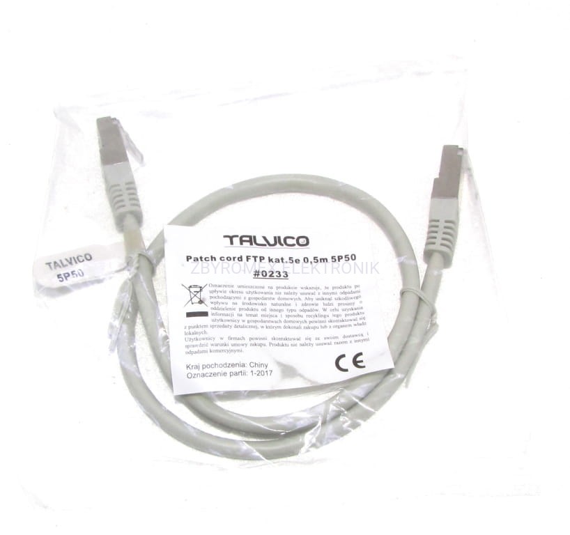 Kabel FTP kat. 5e 0,5m szary