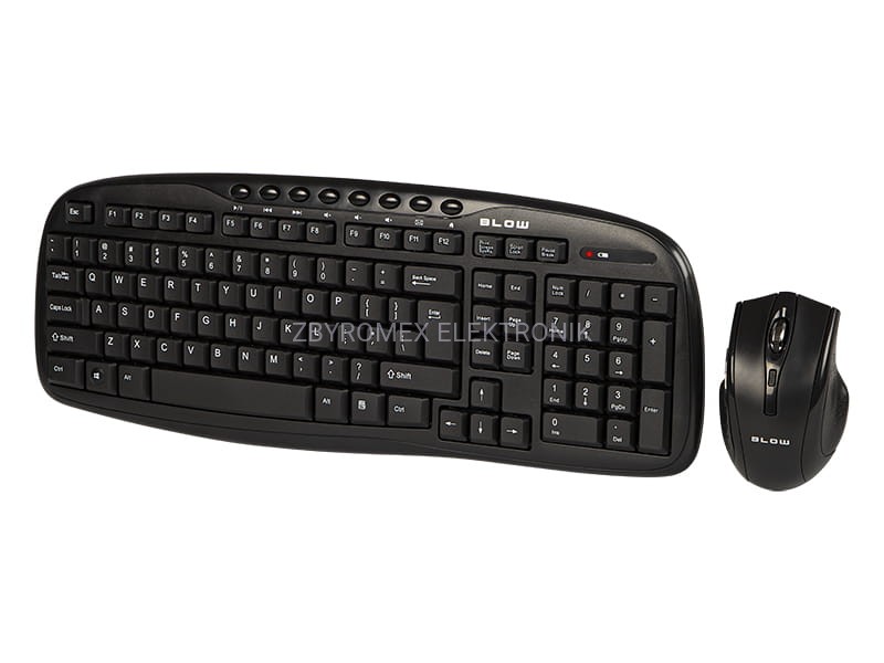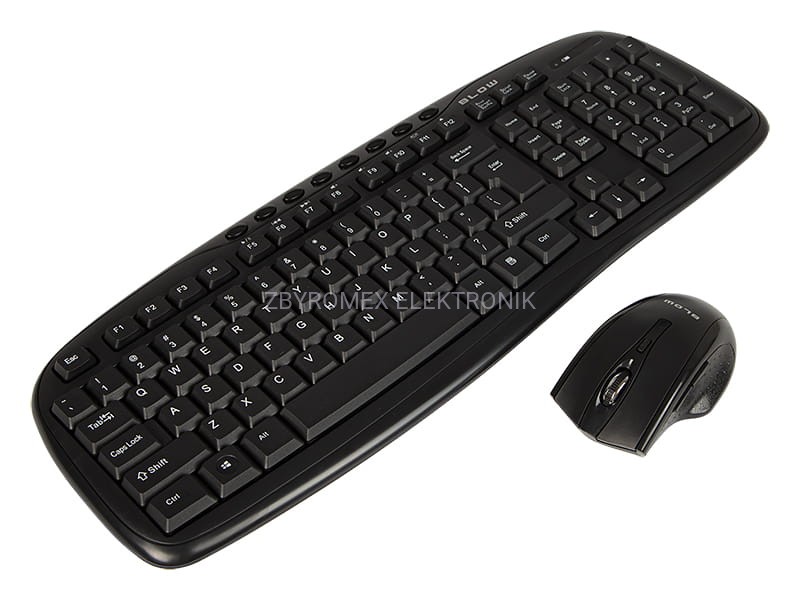 Zestaw bezprzewodowy BLOW KM-1 to niezwykle wygodny i uniwersalny zestaw bezprzewodowej klawiatury i myszy pracujący na częstotliwości radiowej 2,4 GHz. Zestaw został wyposażony w miniaturowy odbiornik USB schowany w myszce, który po podłączeniu do komputera sam automatycznie instaluje się w systemie i nawiązuje połączenie z klawiaturą i myszą. Dzięki swoim miniaturowym rozmiarom nie musimy pamiętać o odłączaniu go od komputera przenośnego, ponieważ jego wymiary nie mają negatywnego wpływu na gabaryty i mobilność urządzenia. Klawiatura została zaprojektowana z myślą o uniwersalności. Posiada wszystkie niezbędne klawisze do pracy biurowej i rozrywki w domu, takie jak klawiatura QWERTY, klawiaturę numeryczną, klawisze sterowania kursorem, klawisze funkcyjne oraz klawisze multimedialne. Budowa i waga klawiatury oraz optymalny skok klawiszy zapewniają komfortową pracę zarówno przy biurku jak i na kolanach. Klawiatura dodatkowo został wyposażona w wskaźnik wyczerpania baterii, dzięki czemu nie zaskoczy nas nagły brak zasilania. Myszka została wykonana z przyjemnych w dotyku materiałów a specjalne ergonomiczne ukształtowanie i dodatkowe pogumowanie wierzchniej strony myszki i rolki znacznie wpływają na wygodę i pewność uchwytu. Technologia optyczna w połączeniu z możliwością zwiększenia rozdzielczości DPI pozwala na bezbłędne i precyzyjne wskazania na prawie każdej powierzchni.