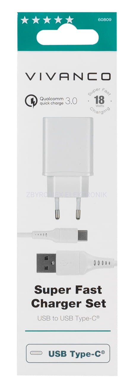 Uniwersalna, superszybka ładowarka USB QuickCharge3.0 z kablem USB Typ-C. Do ładowania wszystkich urządzeń USB z maksymalną prędkością.
