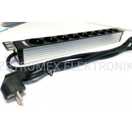 Listwa zasilająca 19" 9 portowa 1U bez wyłącznika, kabel 3m, obudowa ALU