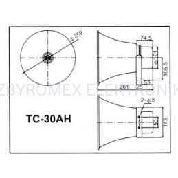 Wejście: 30 W (1/3/5/10/15/30 W) Napięcie: 100 V Częstotliwość: 350-5000 Hz Czułość: 107 dB Rozmiar produktu: śr. 259 / 261 mm