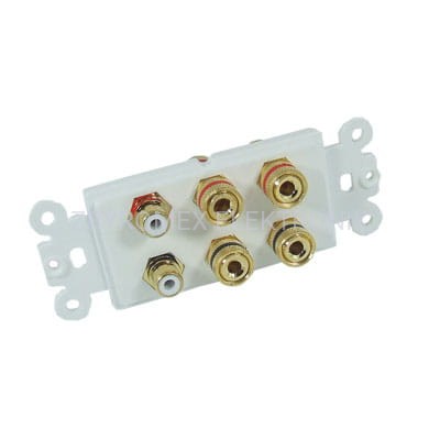 Moduł gniazda, biały 4x BANAN + 2x RCA