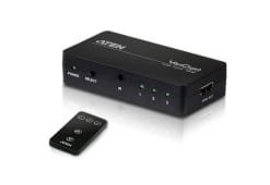 VS381 3-portowy przełącznik HDMI umożliwia szybkie i łatwe podłączenie 3 sygnałów źródłowych HDMI do jednego wyświetlacza HDMI. Urządzenie to zapewnia wygodne przełączanie między urządzeniami cyfrowymi, takimi jak odtwarzacze DVD, odbiorniki satelitarne czy kamery cyfrowe. Żądane źródło sygnału wybiera się za pomocą pilota lub przycisków znajdujących się na przełączniku.