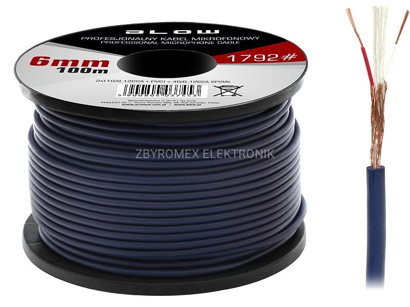 Przewód mikrofonowy 2 żyły 6mm baweł.niebieski
