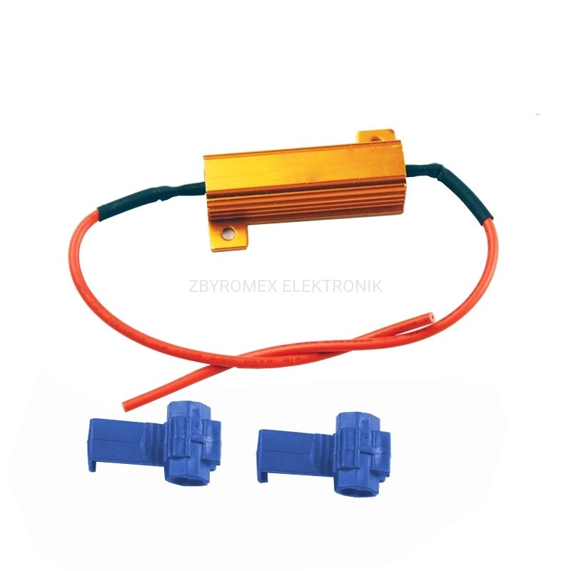 Do rezystora przylutowane są już przewody o długości 10cm oraz dołączone są szybkozłączki umożliwiające szybkie wpięcie rezystora w instalację samochodu.