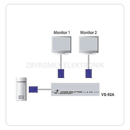 Splitter VS92A umożliwia rozprowadzenie sygnału wideo z jednego komputera do 2 monitorów