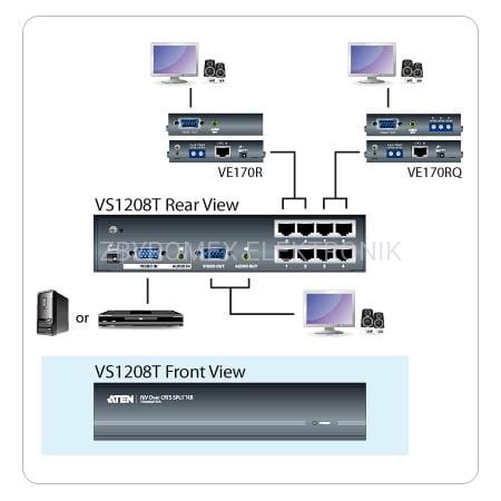 VS1208T A / V Over Cat 5 Splitter jest efektywnym rozwiązaniem do przesyłania wysokiej jakości sygnału audio i wideo do wielu monitorów umieszczonych w odległości do 300 m. VS1208T A / V Over Cat 5 Splitter jest idealnym rozwiązaniem dla profesjonalnych instalacji multimedialnych dla wielu odbiorców.