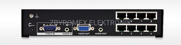 - Z jednego wejścia audio / video na 8 wyjść audio / wideo za pośrednictwem skrętki Cat 5e