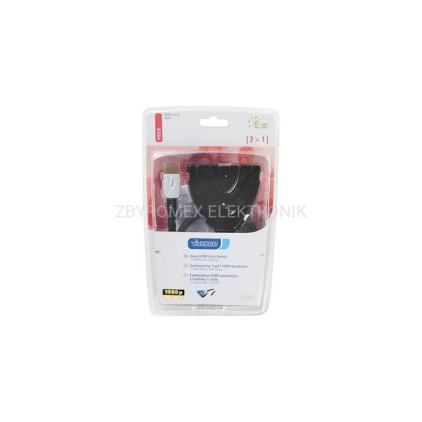 - 3x gniazda HDMI->1x wtyk HDMI - automatyczny switch HDMI umożliwiający łatwe przełączanie pomiędzy trzema źródłami HDMI podłączonymi do jednego odbiornika TV - wyposażony w przewód HDMI o długości 0,8 m. w wysokiej jakości podwójnym nylonowym oplocie - złącza powlekane 24 karatowym złotem - automatyczne przełączanie do urządzenia ostatnio włączonego - możliwość przełączenia manualnego za pomocą przycisku - funkcja LED - odpowiedni do montażu naściennego - dołączona instrukcja