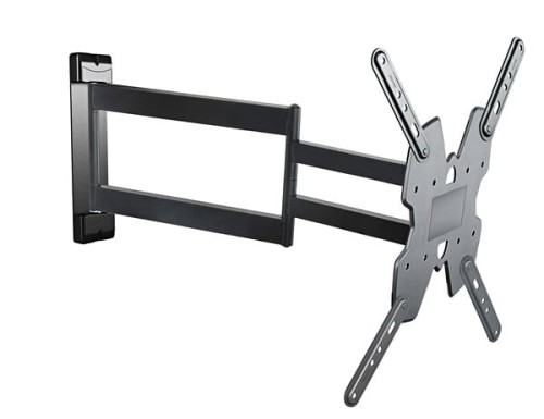 Uniwersalny uchwyt ścienny dla ekranów o przekątnych 26"-50" na wysięgniku, umożliwiający regulację kąta ustawienia TV. Standard VESA do 400x400mm. Odległość TV od ściany 45 - 543 mm Nośność 30 kg. Zawiera akcesoria do montażu Kolor: czarny Instrukcja w języku polskim