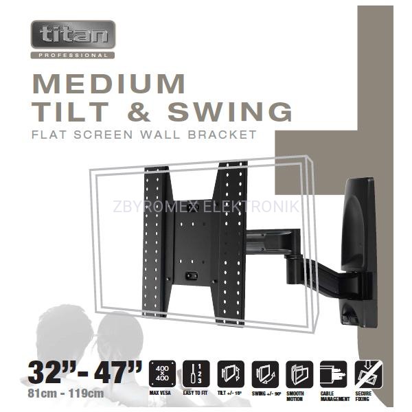 Uchwyt do montażu ściennego telewizorów do 47" z serii Titan Professional. W komplecie szablon ułatwiający wiercenie otworów w ścianie. Aluminiowe ramię pozwalające na ustawienie telewizora w dowolnej pozycji. Stylowe osłony uchwytu. Gwarancja producenta 10 lat.