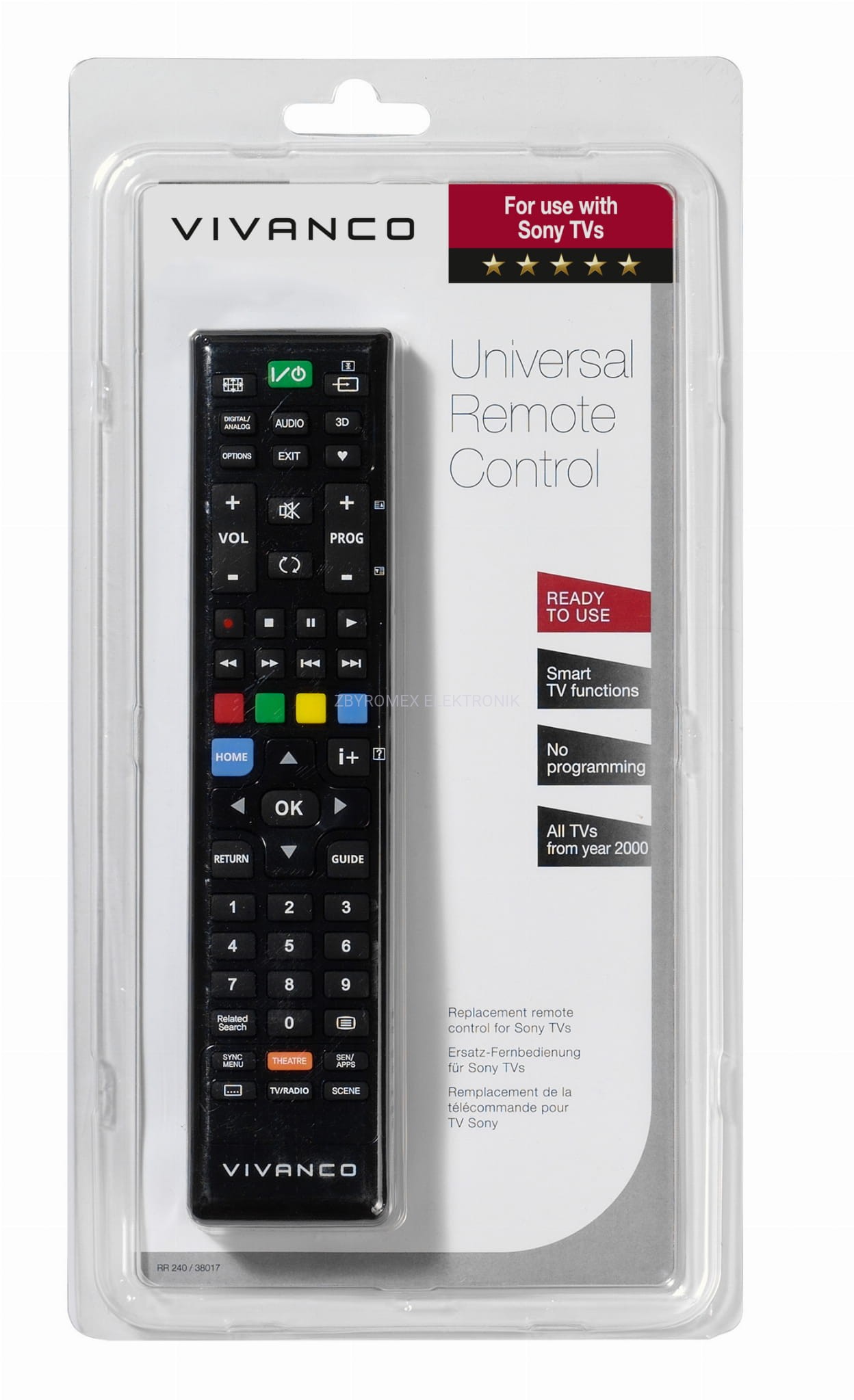 Gotowy do użycia! Pilot zastępczy jest natychmiast gotowy do użycia, bez konieczności programowania można sterować wszystkimi głównymi funkcjami. RR 240 jest kompatybilny ze wszystkimi telewizorami od 2000 roku.