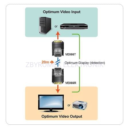Urządzenie składa się z dwóch elementów: transmitera i odbiornika (receiver). Umożliwia połączenie źródła sygnału DVI (komputera, odtwarzacza DVD, ..) z monitorem, rzutnikiem lub telewizorem znajdującym się w odległości do 20m. Jako kabel łączący wykorzystuje się tanią skrętkę 4-parową kat 5e lub wyższej.