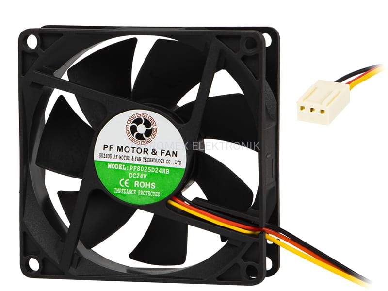 Wentylator 80x25mm 24V kulkowy 3-przewodowy