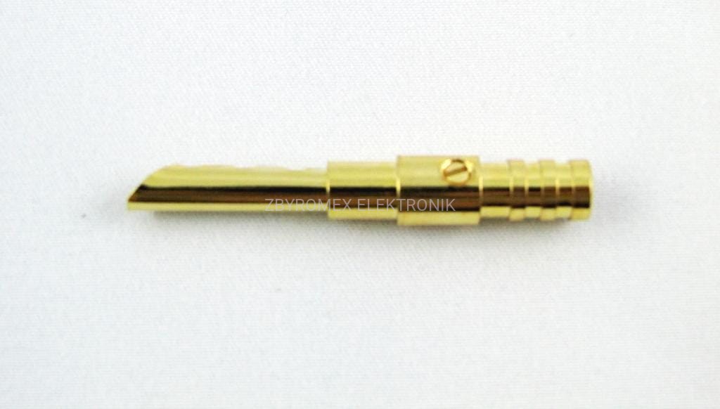 Wtyk/gniazdo o bardzo wysokiej jakości i precyzji wykonania zapewniający bezstratny przesył sygnału dźwiękowego. Korpus wtyku wykonano z trwałego elastycznego tworzywa izolacyjnego natomiast powierzchnia styku wykonanego z brązu została pokryta złotem w celu zapewnienia optymalnego przesyłu sygnału. Zastosowanie: jako zakończenia przewodów głośnikowych w zestawach audio/kina domowego. |