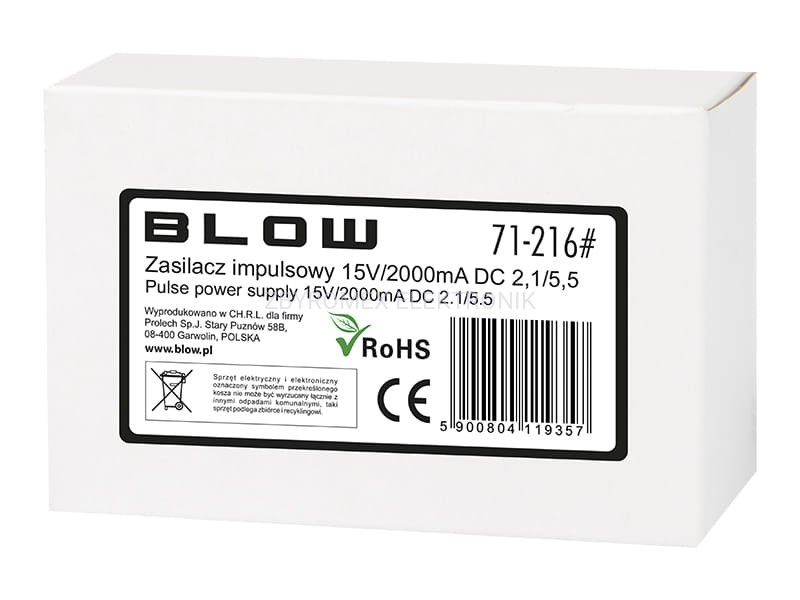 - Impulsowy zasilacz wtykowy przeznaczony do użytku domowego