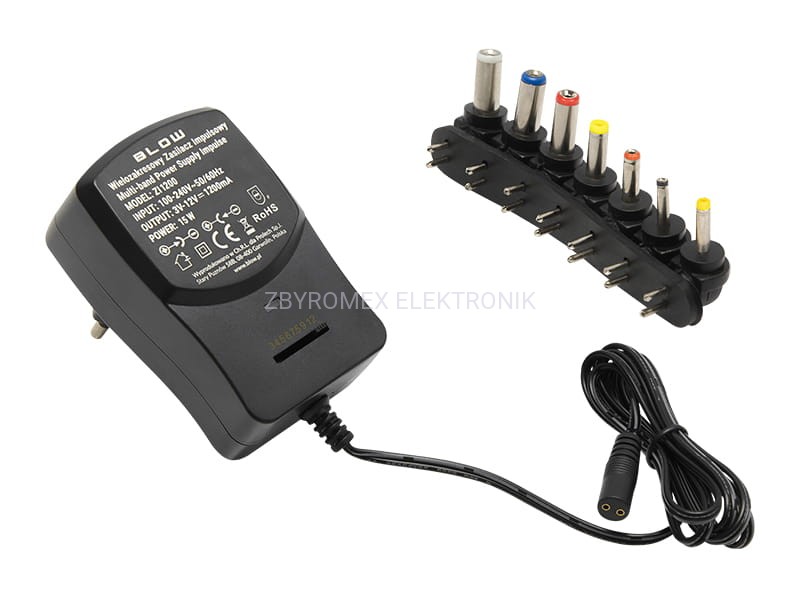 Zasilacz impulsowy PRO 1200 ZI z regulacją napięcia wychodzącego. Zasilacz jest wyposażony w automatyczny przełącznik napięć wejściowych w zakresie 100 - 240V o częstotliwości 50/60 Hz, i jest w stanie generować napięcie wyjściowe o następujących wartościach: 3.0, 4.5, 6.0, 7.5, 9.0 lub 12V. Funkcja ta umożliwia wykorzystanie urządzenia w szerokim zakresie zastosowań. Dodatkowo w zestawie dostarczone są wymienne końcówki DC. Zasilacz posiada zabezpieczanie przeciwprzepięciowe.