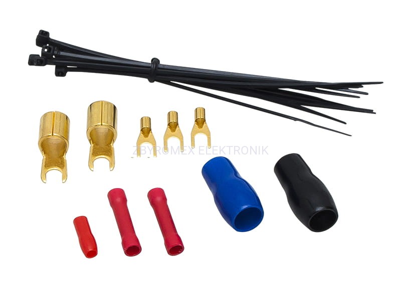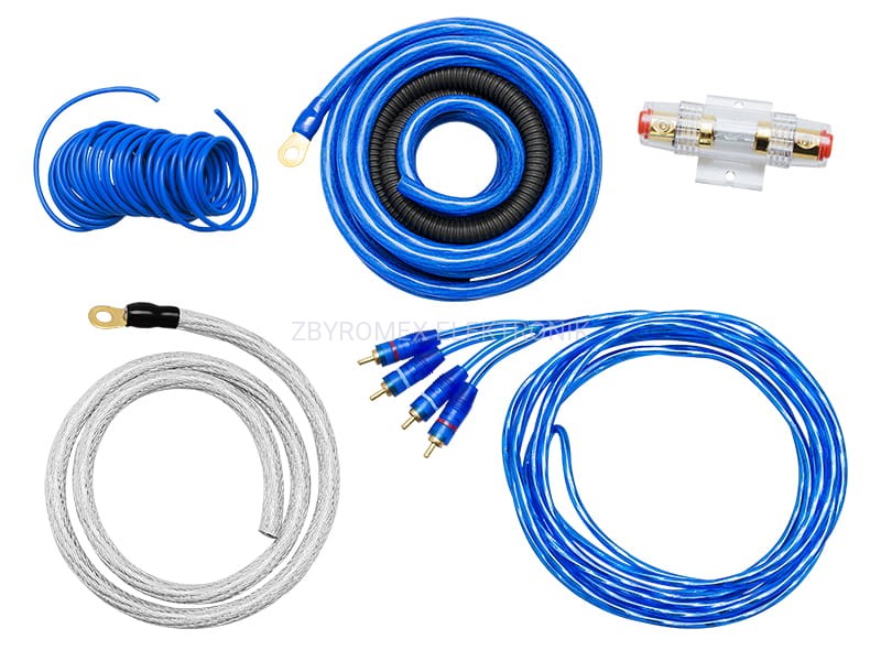 Uniwersalny zestaw przewodów umożliwiający podłączenie wzmacniacza do samochodowej instalacji car-audio.